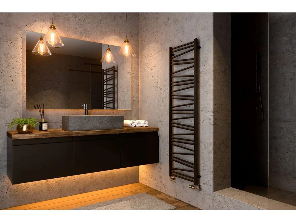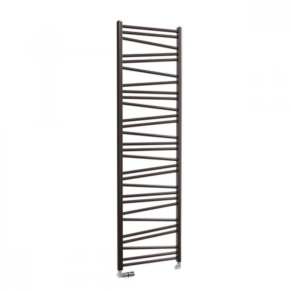 Рушникосушка Isan Malawi грає на контрасті вертикальної строгості бокових елементів і рухливої асиметрії перемичок: трубки під кутом чергуються у вигляді зигзаґу, створюючи відчуття руху та ритму. Така композиція привертає погляд і робить прилад виразним елементом інтер’єру, а не просто технічною деталлю.